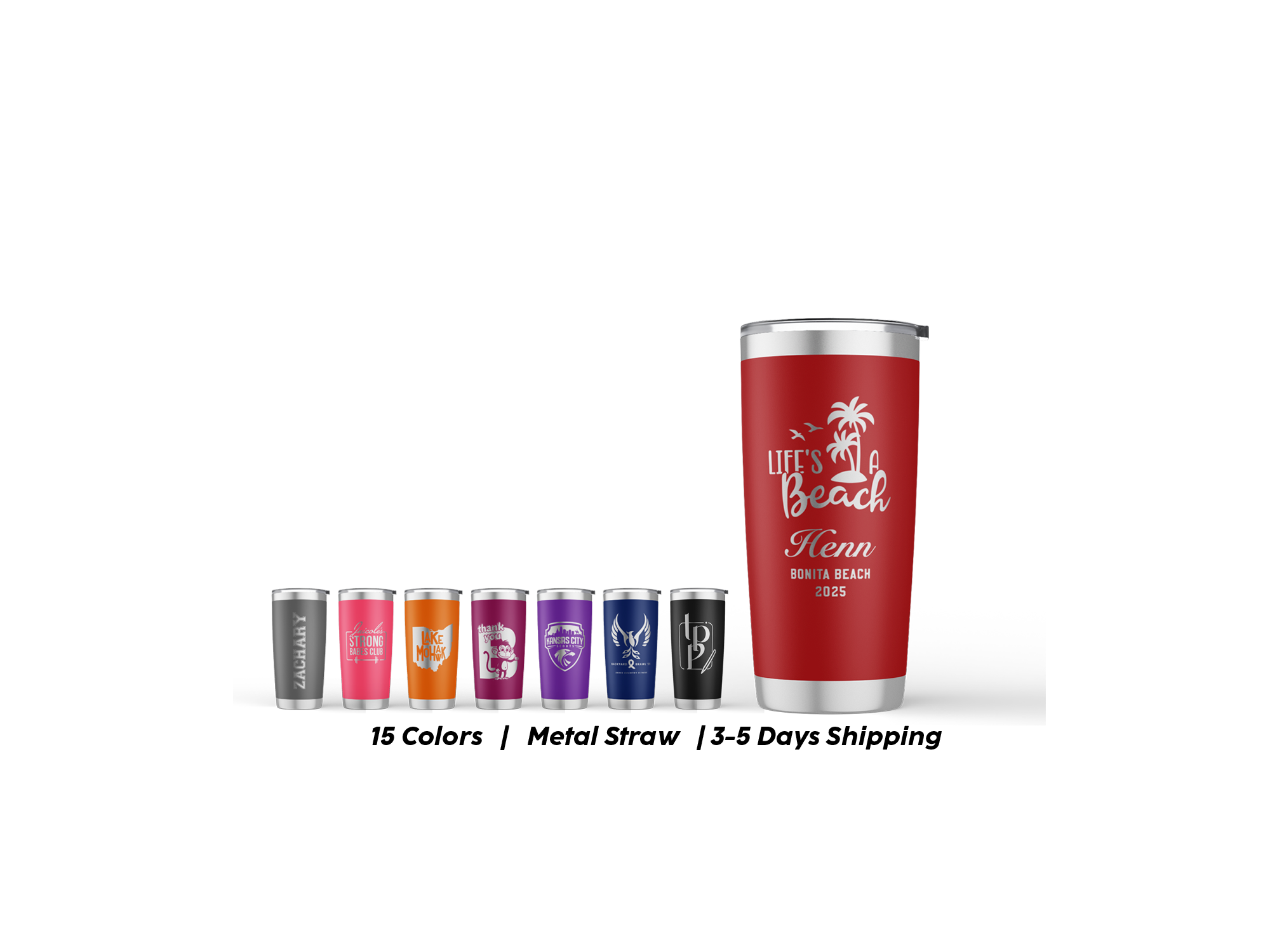 • Come with sliding lid and optional metal straw.